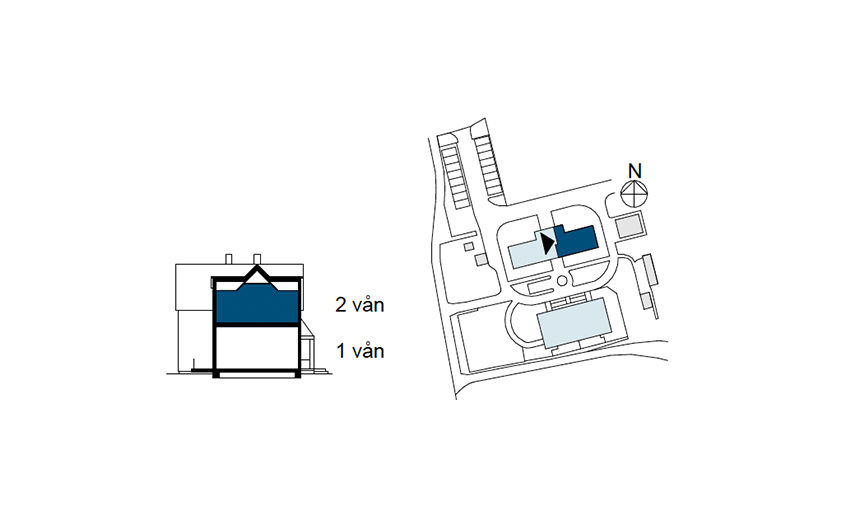 Den gamla skoldelen har högt i tak, över 3 meter till takbjälkarna. En charmig och personlig lägenhet på andra våningen med balkong. Med synliga bjälkar, snedtak och takfönster får du en lägenhet som inte liknar någon annan. Med över 40 kvm i kök och vardagsrum finns det plats för både ett stort matbord och soffor. En kylig vinterdag är det skönt att slänga upp fötterna framför braskaminen från Nordpeis. En vanlig dag kan läxorna göras eller korsordet lösas vid köksön.